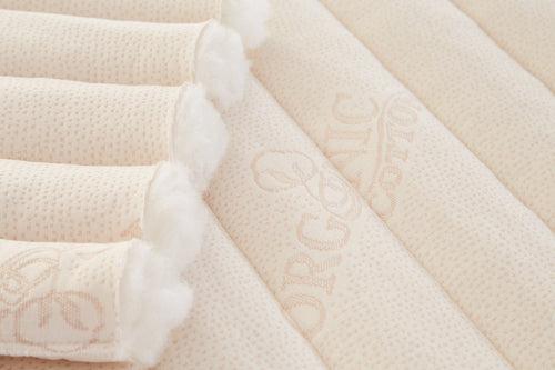 The elasticity of our circular knit cover allows the organic cotton a natural way to be wrinkle resistant and stretchable without becoming permanently distorted, which in turn enables less constriction of blood flow, allowing a deeper undisturbed sleep.